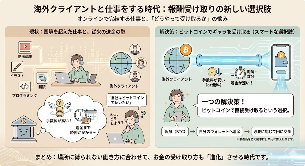 動画編集、イラスト、プログラミング、翻訳など、オンラインで完結する仕事が増えました。今では、日本にいながら海外クライアントと仕事をする人も珍しくありません。そこで悩ましいのが、「どうやって報酬を受け取るか」という問題です。