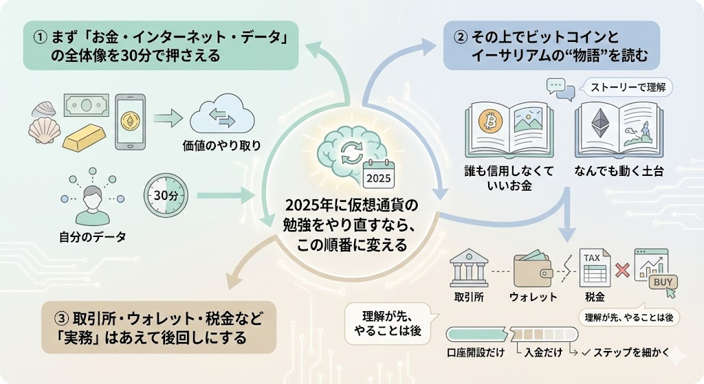 2025年に仮想通貨の勉強をやり直すなら、この順番に変える