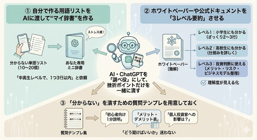 プロジェクトのホワイトペーパー(公式の説明書き)は、いきなり全部読むとほぼ確実に心が折れます。そこで、AIにはこう頼みます。