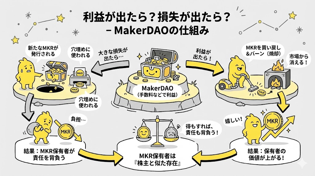 つまり、MKR保有者は「得もすれば、責任も背負う」──株主と似たような存在なのです。