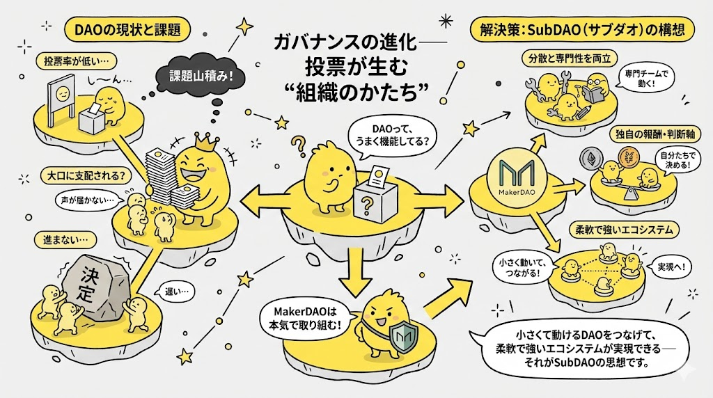 ガバナンスは、DeFiの心臓部です。 でも実際には「投票率が低い」「大口に支配される」「進まない」といった問題も多い。