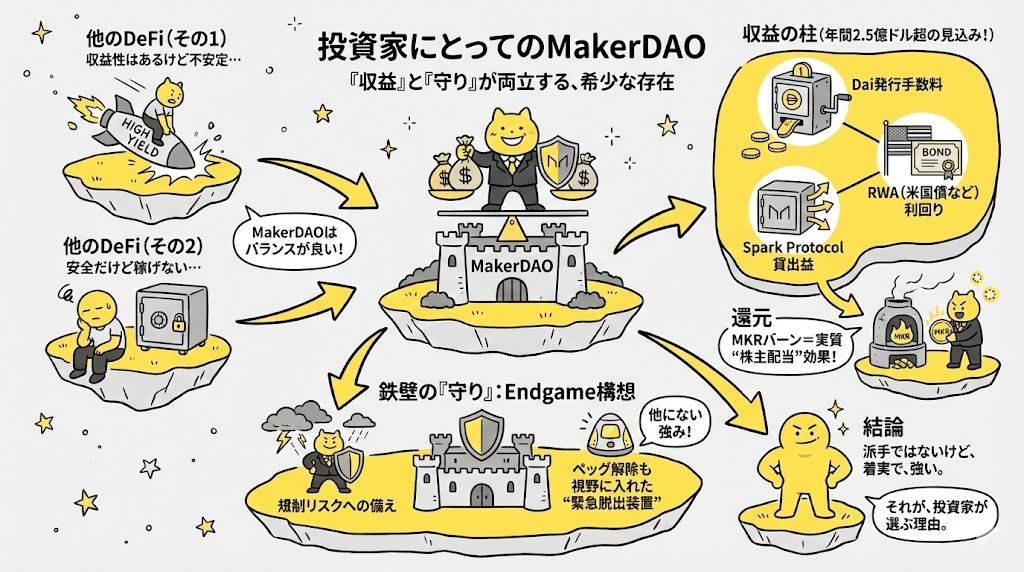 派手ではないけど、着実で、強い。 それが、投資家がMakerDAOに惹かれる理由です。